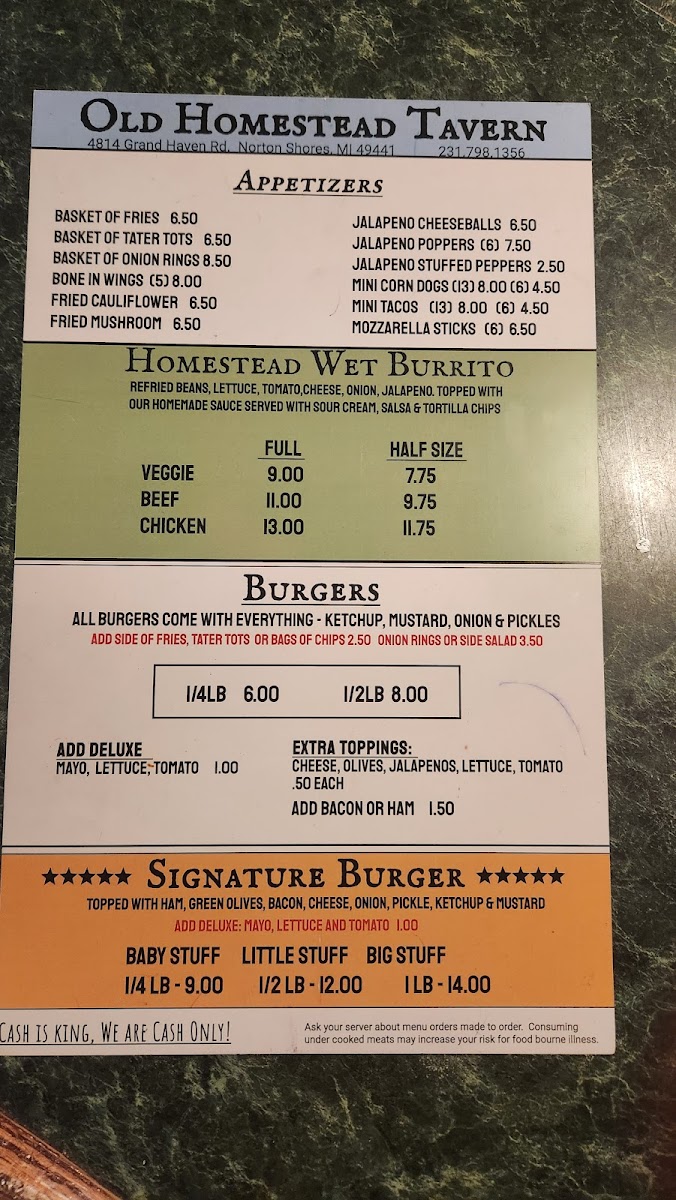 Welcome to Old Homestead Tavern, a beloved local gem situated at 4814 Grand Haven Rd, Norton Shores, MI. With a reputation for its hearty, freshly made dishes and budget-friendly drinks, this tavern is a must-visit for food enthusiasts and travelers alike.